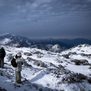 我們是在2月初的時候上山,當時山下的天氣非常好,我們邊走前往山屋的時候,一路上晴空萬里,也因為背著重裝導致我已經走十分鐘就汗流浹背,甚至熱到只穿一件排汗衫,要不是只有帶長袖排汗衫,我就直接穿短袖了,可以知道那時我完全不會知道我即將面臨我人生中最大的一場大雪。